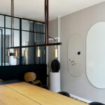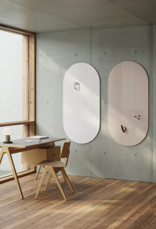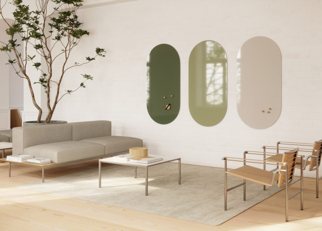 CHAT BOARD® Ambit markiert einen neuen Ansatz für die wandmontierte magnetische Glastafel. Als Geistesverwandter der beliebten Orbit-Kollektion, verfügt es über eine ähnlich geschwungene Silhouette, die dieses Mal in ein wohlproportioniertes Oval umgewandelt wurde, indem der Kreis in der Mitte geteilt und mit einem zentralen Quadrat verbunden wurde.